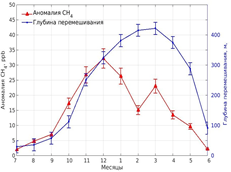 In Kara Sea (Fig. 2) methane encounters another barrier – sea ice. Ice degradation during last 17 years makes this barrier more and more penetrable. Growing methane flux over the Kara Sea is explained by fast growth of ice-free surface area. During a coming decade a further growth of methane flux is expected even for stable underwater sources.