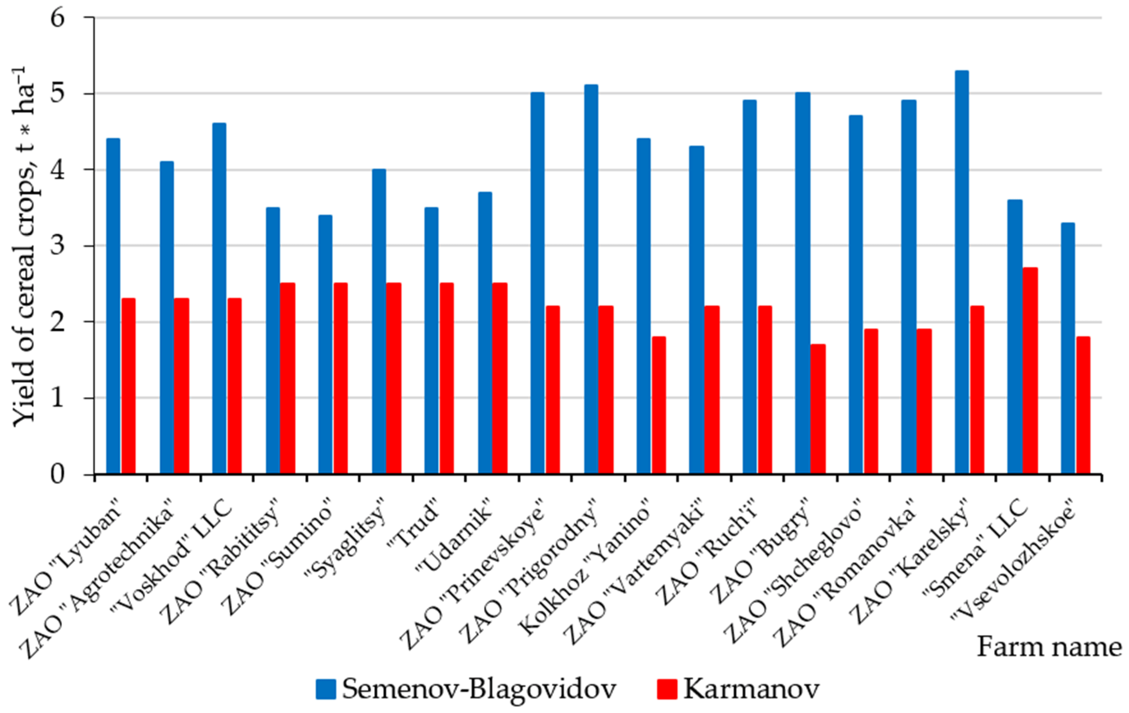 The Semenov and Blagovidov calculations showed higher yields than Karmanov. The Karmonov method with more agrochemical indicators such as pH effect suggesting that their modelling may be able to take account of the worst factors. Higher temperatures and precipitation will need to be included alongside influence of changes in agricultural technologies and environmental factors such as land use change.