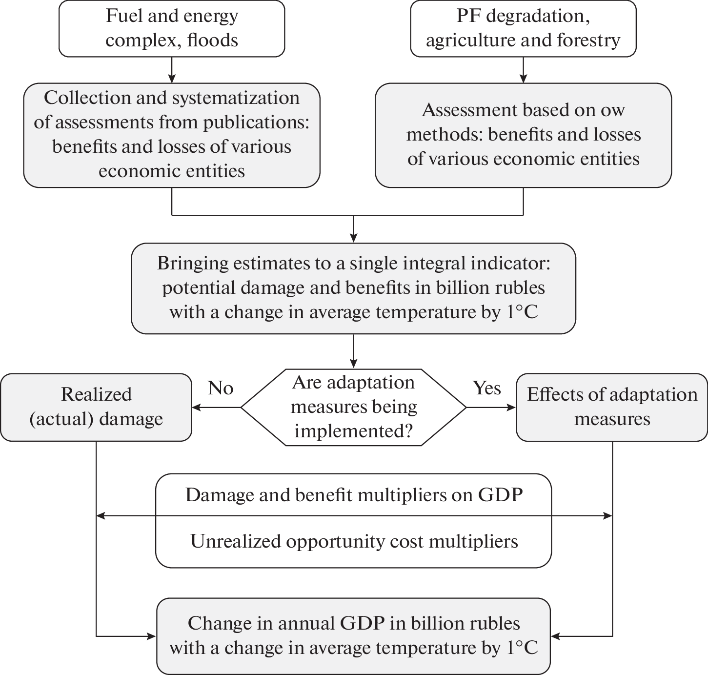 Overall they estimated GDP reduction of 3 trillion rubles, based on data up to 2022. They note that the limitations of data sources, data measurement and modelling produce high uncertainty. They suggesting continue to review policies and implement adaptation efficiency initiatives that need to balance the quality of life, safety of the population alongside economic competitiveness.